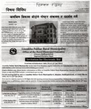 काेल्काे सडक स्तराेन्नती वडा नं. ७ र काेल्ड स्टाेर गृहकाे पुर्वाधार निर्माण वडा नं. ७ काे बाेलपत्र आह्वान