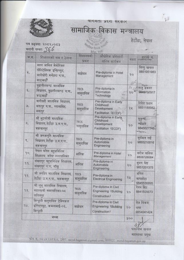 सामाजिक विकास मन्त्रालयको सूचना सम्प्रेषण सम्बन्धमा।